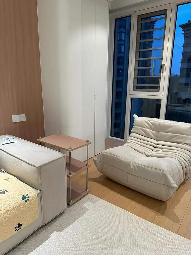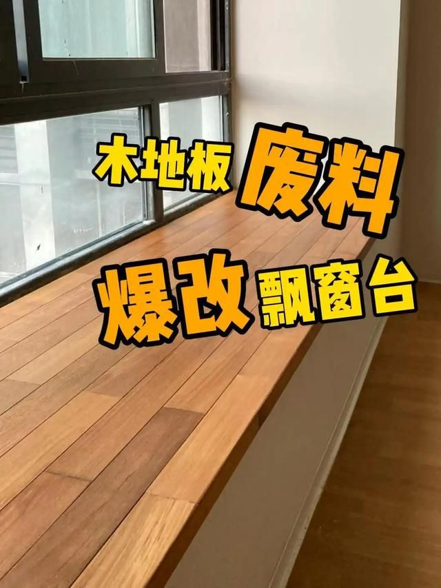 地板铺完剩下的碎料,不要扔!自己用锯子裁出45度斜角,把一块块拼接成飘窗台。只用木工胶粘合,简简单单一片,质感还不错。