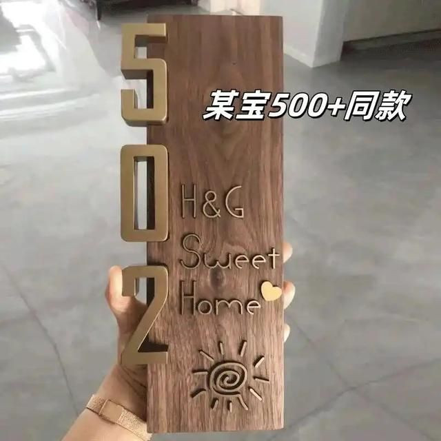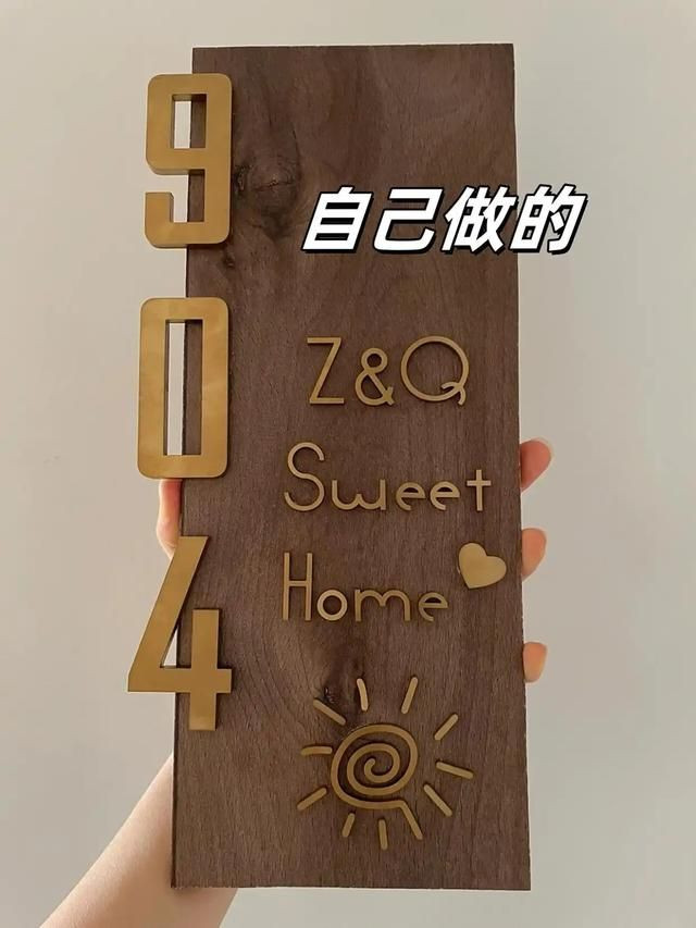 用剩下的木地板在家DIY门牌,尺寸自己定,师傅帮忙切割,最后用金属字贴上,低成本高颜值,还实现了“网红门牌梦”!