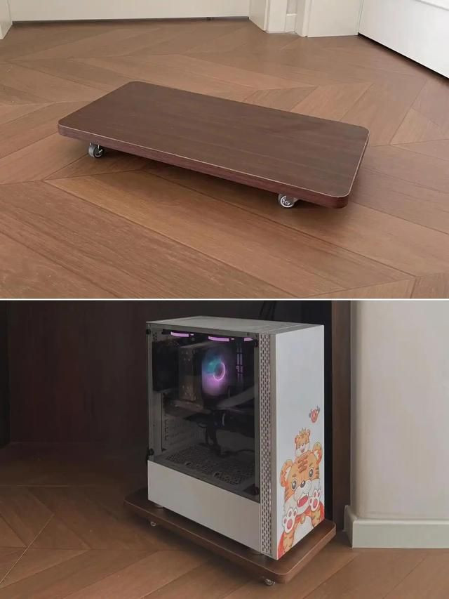 用剩下的板材拼凑,做了个电脑主机底座,方便移动,还加装杆子做成落地衣架,不仅实用,还特别有趣。