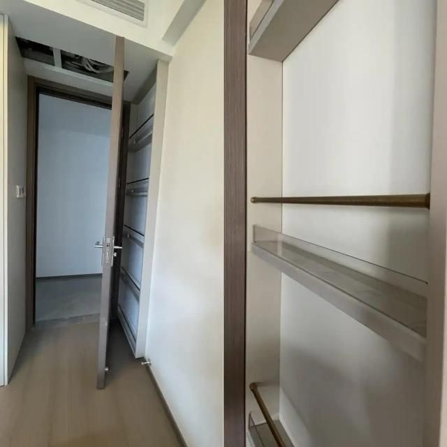 而且像是装修时,全屋定制剩余的木条,也可以拼成了三个门后挂衣杆,不得不说木工边角料,也有藏不住的宝藏潜力!